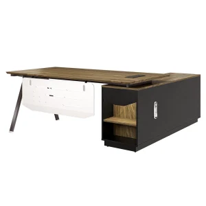 Mẫu bàn này thường có dáng L để mang đến không gian làm việc hiệu quả hơn. Bên cạnh đó, bàn sử dụng kết hợp một số nội thất khác như: tủ phụ, hộc phụ, tủ hồ tài liệu… tạo nên không gian tinh tế không kém phần chuyên nghiệp, khẳng định đẳng cấp của người đứng đầu.