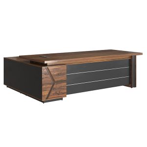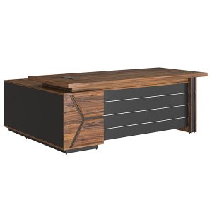 Mẫu bàn này thường có dáng L để mang đến không gian làm việc hiệu quả hơn. Bên cạnh đó, bàn sử dụng kết hợp một số nội thất khác như: tủ phụ, hộc phụ, tủ hồ tài liệu… tạo nên không gian tinh tế không kém phần chuyên nghiệp, khẳng định đẳng cấp của người đứng đầu.