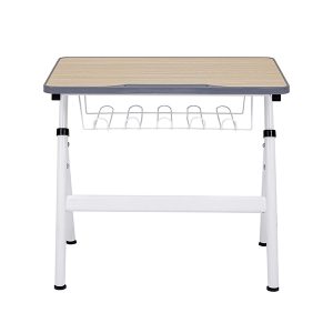 Bàn ghế học sinh đơn. Khung thép sơn tĩnh điện, mặt gỗ tự nhiên được phủ một lớp sơn trong suốt để bảo vệ bề mặt và giữ được mầu sắc nguyên bản của gỗ.