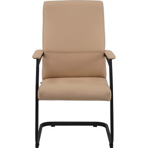 Bàn ghế văn phòng bọc da đàn hồi, nâng đỡ lưng, hạn chế đau mỏi, kết hợp với khung chân quỳ vững chãi, tinh gọn là giải pháp hoàn hảo về cả tính năng lẫn độ thẩm mỹ trong bày trí văn phòng. Không mang động năng như ghế chân xoay, ghế chân quỳ mang đến sự chắc chắn, cố định, giúp người ngồi dễ dàng tập trung. Do đó, mẫu ghế này được sử dụng phổ biến trong các không gian họp.